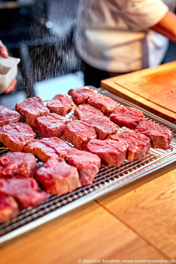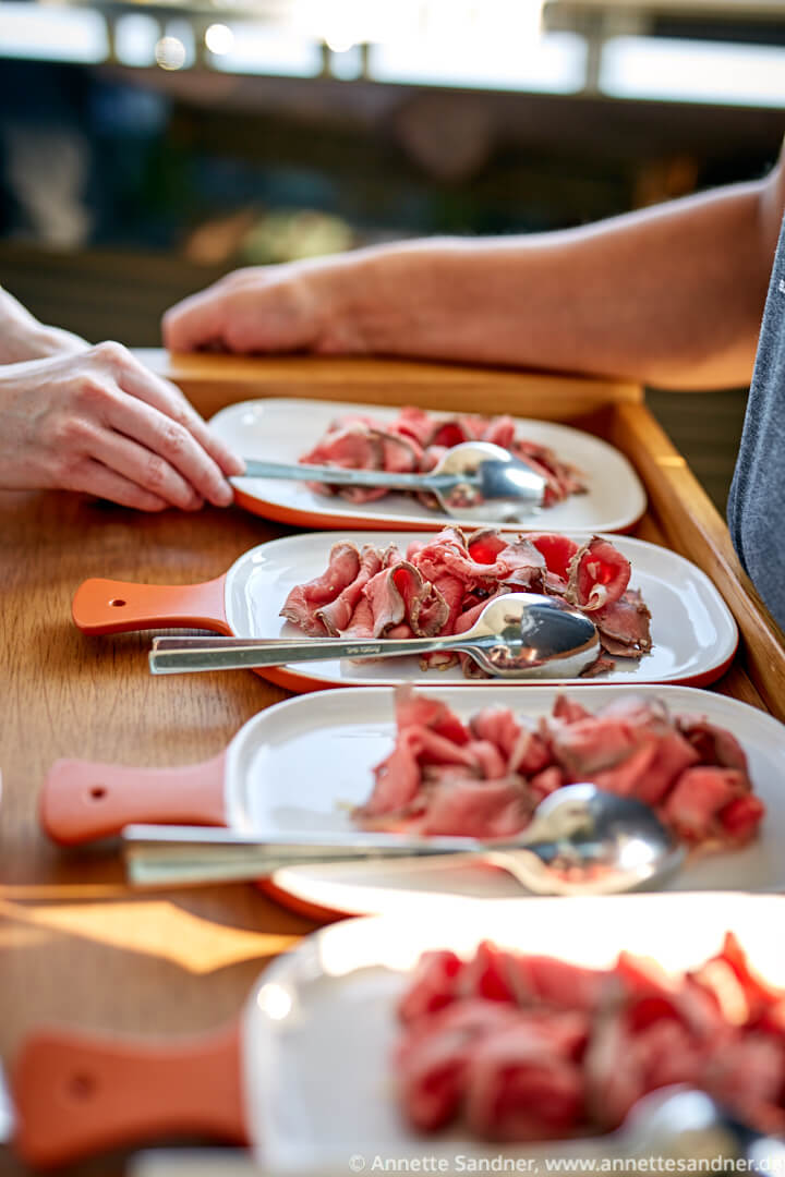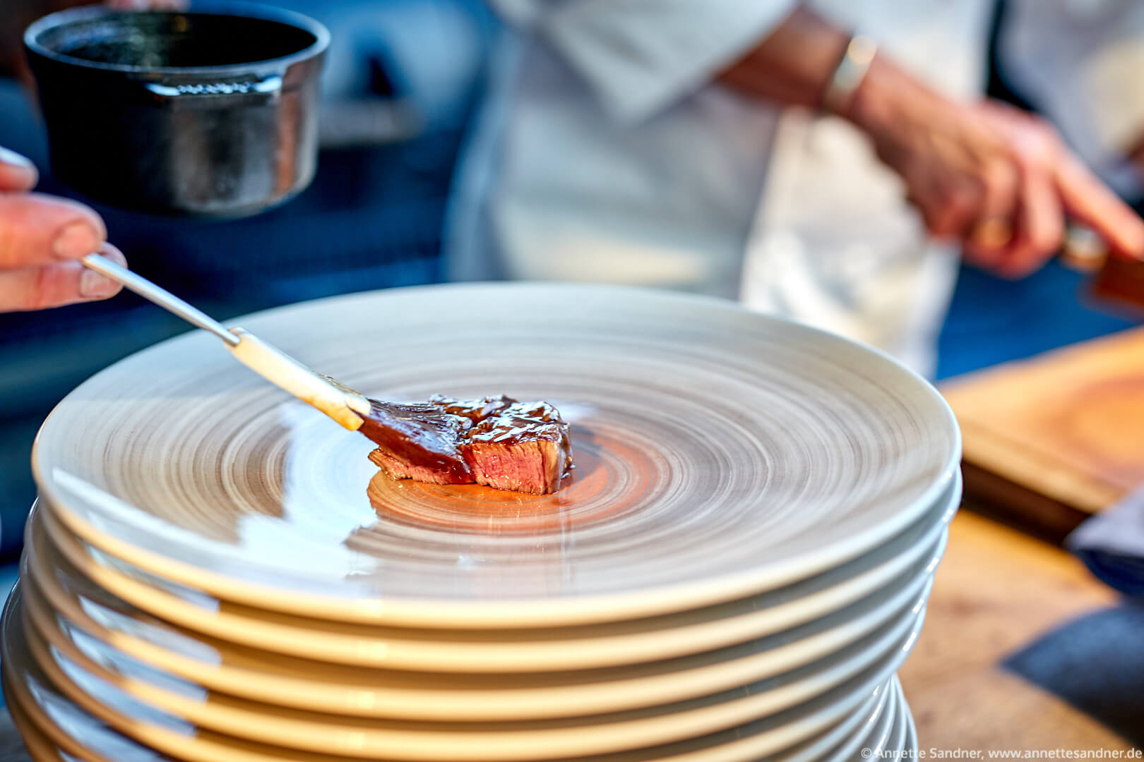 Bobby Bräuer (Restaurant Esszimmer, BWM Welt München, 2* Michelin) ist seit einigen Monaten Mitglied des Chef’s Irish Beef Clubs. Rund 80 Spitzenköche weltweit sind unter diesem Dach zusammengeschlossen, es vereint sie ihre Überzeugung von der guten Fleischqualität aus Irland. Im Rahmen eines BBQ-Events auf der wunderbaren Terrasse der Bavarie in der BMW-Welt war Bobby Bräuer Gastgeber für eine Reihe von interessierten Journalisten und hat die vielen Facetten von Irischem Rind- und Lammfleisch köstlichst vom Grill auf den Teller gebracht. Weiter unten in diesem Artikel findet sich auch sein Rezept für eines meiner Lieblings-Gerichte auf dem Event: geschmorte Lammschulter mit Wurzelgemüse und Estragon.