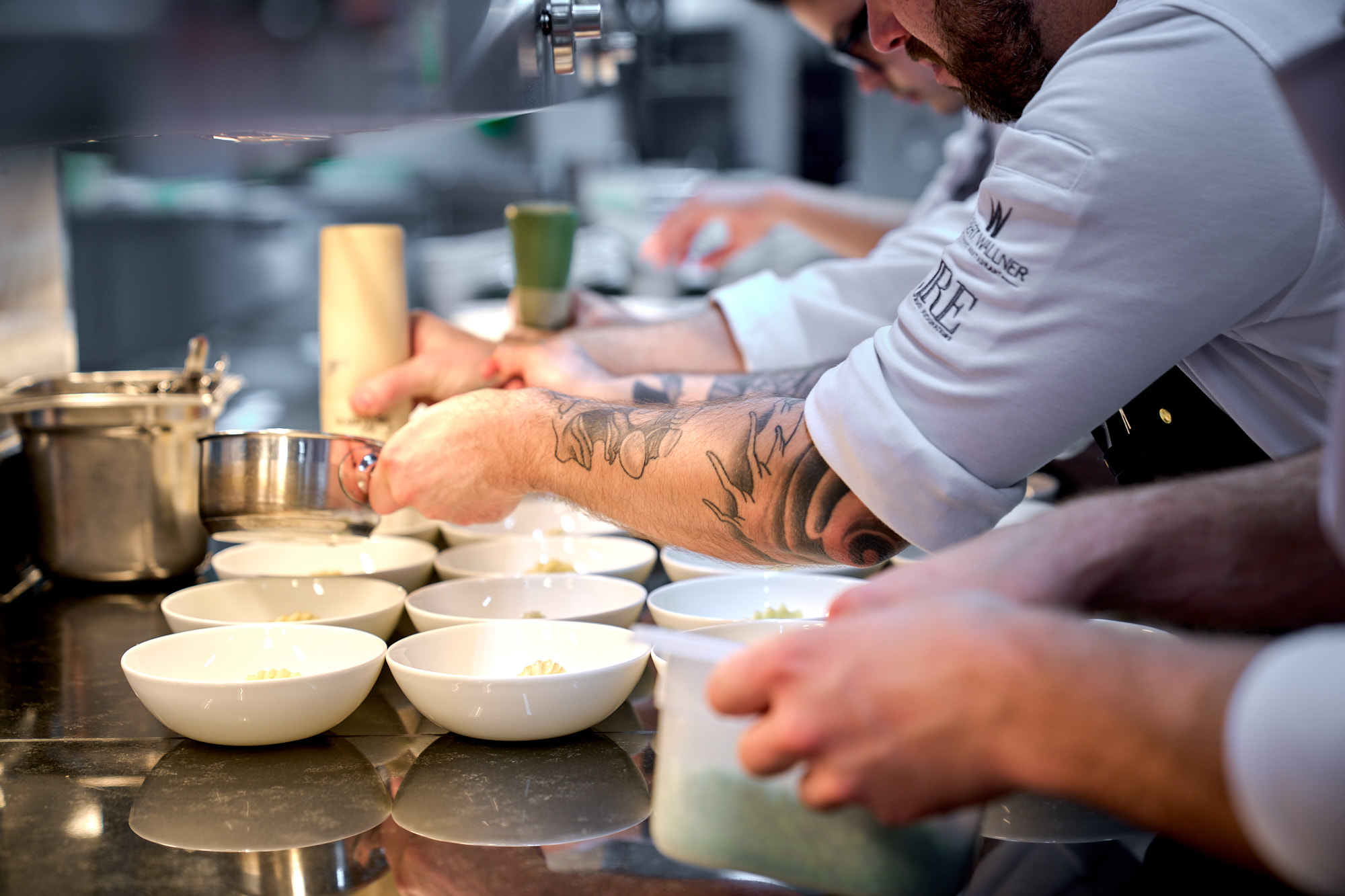 Nach einer Küchenparty an Tag eins läutete Hubert Wallner, „Gault Millau Koch des Jahres 2020“ in Österreich, mit seinem Team die Reihe der Dinner-Abende 2021 ein. Ihm folgten Andreas Döllerer und der Küchenchef des Hauses, Gerhard Wieser. Der erste Abend stand also ganz im Zeichen der Verbindung vom Wörthersee nach Meran, wohin Wallner mit seinem Team gereist war.