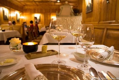 Die Speisekarte ist klein und täglich wechselnd. Ein oder zwei Gerichte waren daher auch leider schon aus, als wir an einem Freitag Abend um 20 Uhr da waren. Nicht weiter schlimm, wir haben uns geschlossen für das viergängige Menü (für 47 Euro) entschieden. Dazu Clemens Busch vom Roten Schiefer von der übersichtlichen aber nicht zu kleinen Weinkarte, die sich auf ein paar schöne Tropfen aus Europäischen Weinbaugebieten konzentriert und nach Rebsorten sortiert ist.