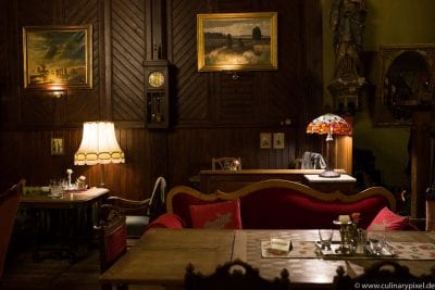 Das handgeschriebene Menü lässt angenehm viel Freiraum: Von zwei vorgeschlagenen Menüs ist eines komplett vegetarisch, zu drei Gängen ist geraten (vegetarisch 48 EUR, mit Fisch und Fleisch 58 EUR), jeder weitere Gang ist mit 12 EUR wirklich fair bepreist. Wir mischen zu zweit insgesamt fünf Gänge wild durch den Garten zwischen beiden Menüs hin und her, alles kein Problem. Dazu eine Flasche Wein von der schön zusammengestellten Karte, die eine feine und nicht zu große Auswahl an hauptsächlich deutschen Weinen bereit hält. Die Wahl fällt auf Silvaner vom Weingut Bickel-Stumpf, was hab ich mich gefreut, den auf der Karte zu entdecken!