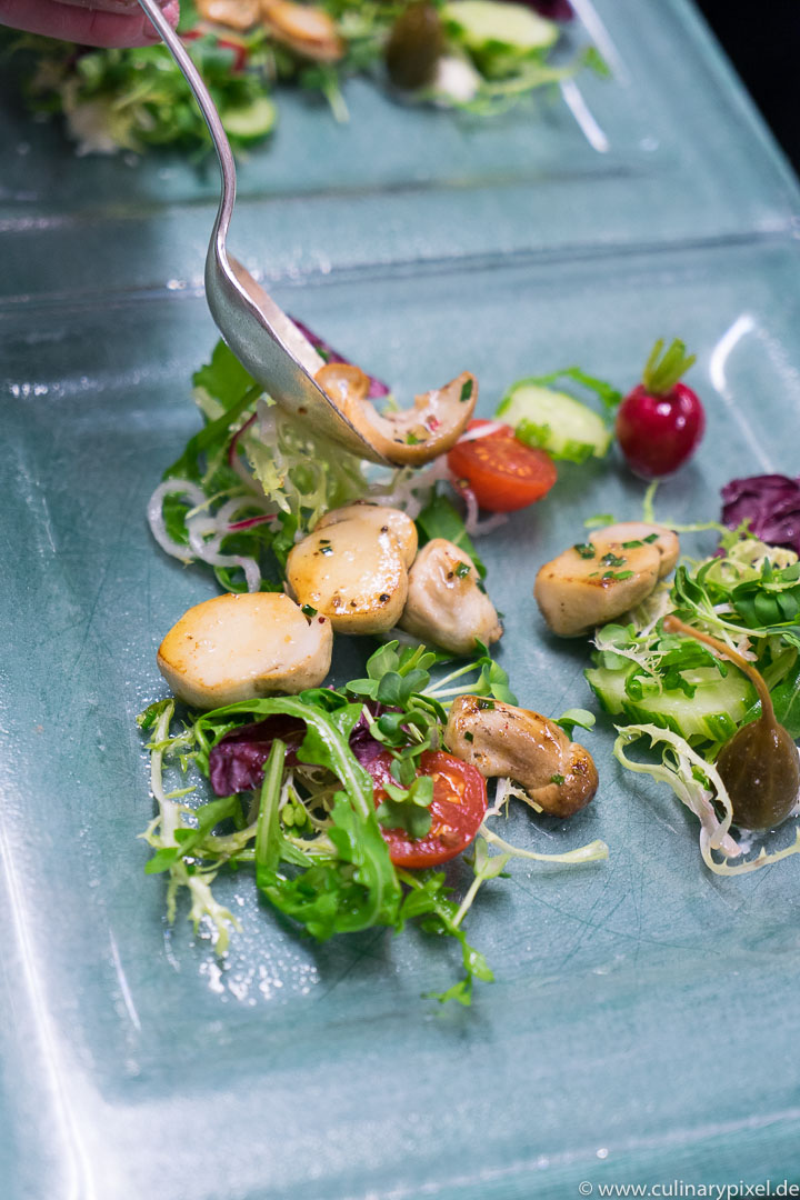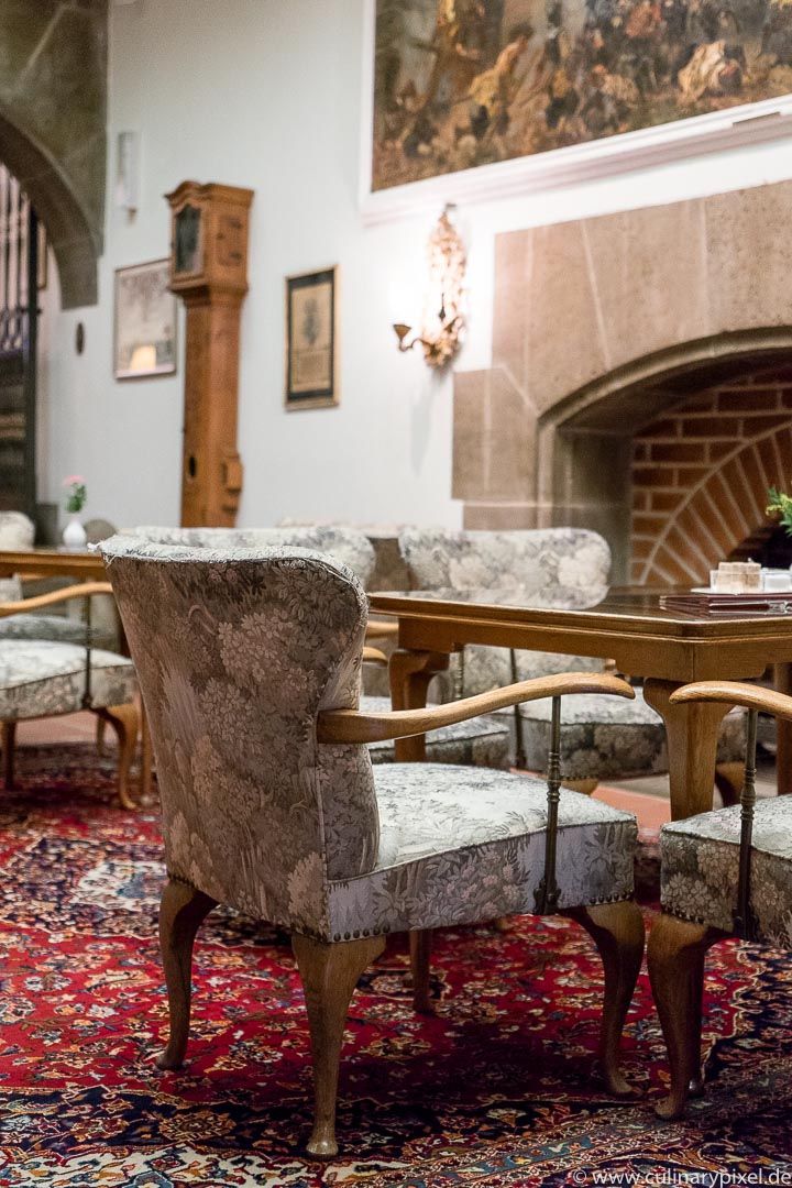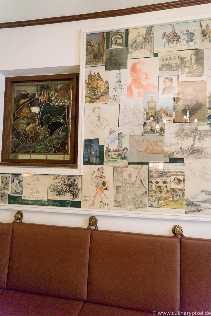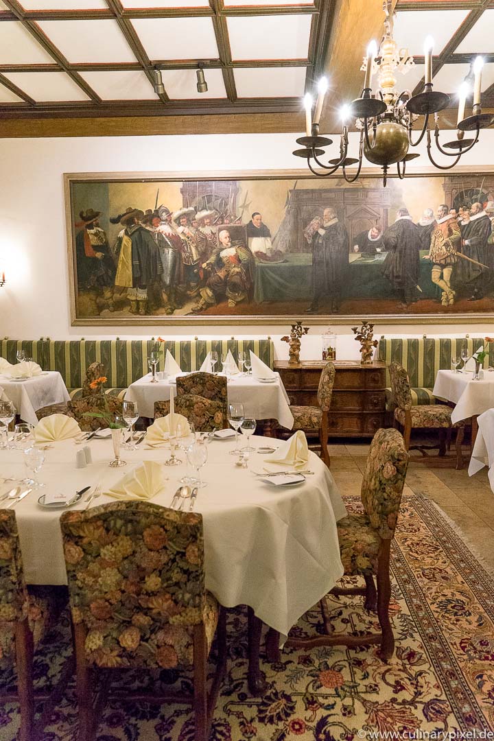 Ich verbringe meinen Mittag im historisch eingerichteten Restaurant und habe zwischen den Gängen auch die Möglichkeit, mich in der Küche ein bisschen umzusehen. Auf den Teller kommen bayerische und fränkische Spezialitäten ebenso wie französische und deutsche Klassiker, handwerklich einwandfrei und mit Liebe zu Detail und Zutaten zubereitet.