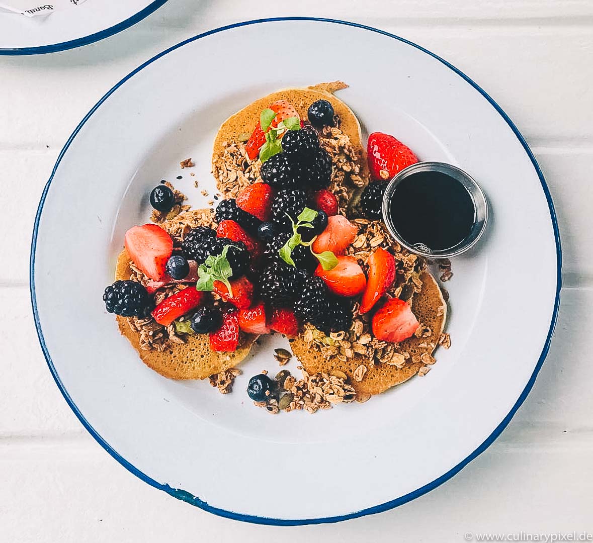 An der hippen Theke wird bestellt und man sucht sich dann im gemütlichen Innen- oder im ruhigen Außenbereich ein kuscheliges Plätzchen zwischen coolen Surfern und fleißigen Young Professionals mit Laptop. Ich hatte die „Papaya Fruit Bowl“, eine halbe Papaya gefüllt mit Kokos-Chia-Pudding, einer Kugel Acai-Eis, jeder Menge Beeren und Minze. Fruchtiger geht nicht mehr, und trotzdem nicht zu süß. Yummy! Wir haben dann noch die „Sweet Squash Pancakes“ probiert, mit Avocado, Müsli und natürlich Beeren – auch die waren echt ein Genuss. Das Motto „Eat well, go surfing“ ist hier absolut super umgesetzt… wobei ich auf den Teil mit dem Surfen dann verzichtet habe.